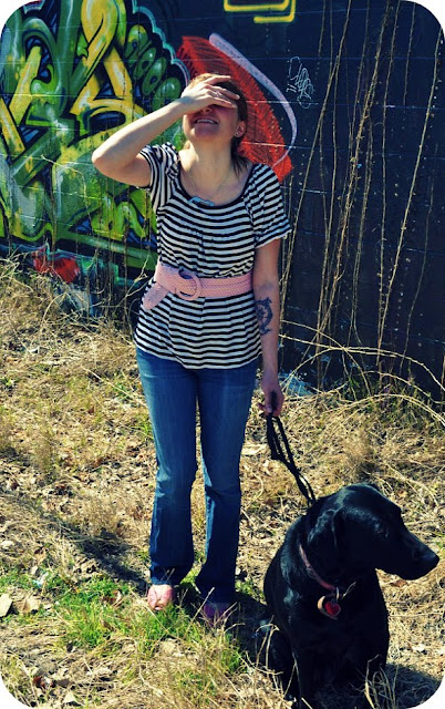 I have never purchased a black and white striped shirt before, not because I don't think French film noir isn't cool, because it certainly is, but because it reminds me more of classic prison films.  But when you walk in to Buffalo Exchange, see a striped Michael Kors shirt with fluttery sleeves just hanging there, and it happens to be black and white, how can you tell it no?